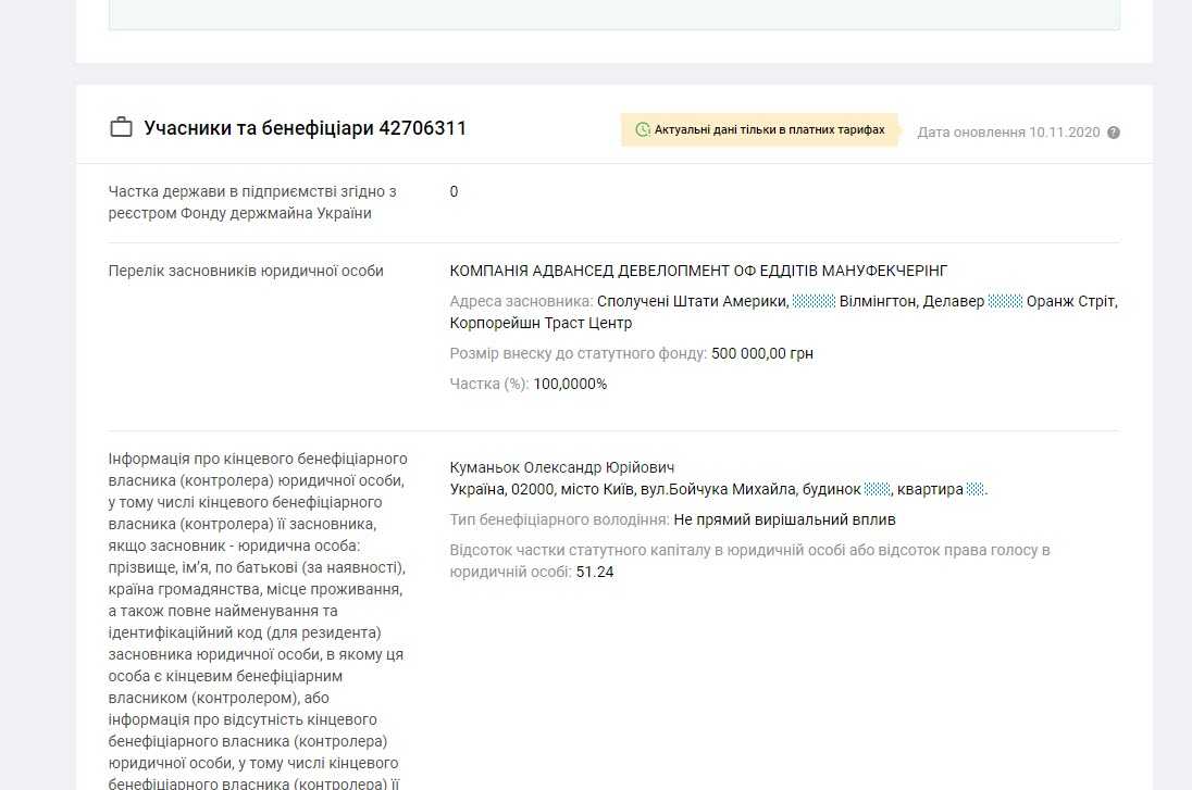 При этом он указывает на своей странице, что является «энтузиастом биохакинга». Как уже писали СМИ, по данным Youcontrol, ООО «АДАМ КОРП» и АДВАНСЕД ДЕВЕЛОПМЕНТ ОФ ЕДДІТИВ МАНУФЕКЧЕРИНГ контролируется Александром Юрьевичем Куманьком.