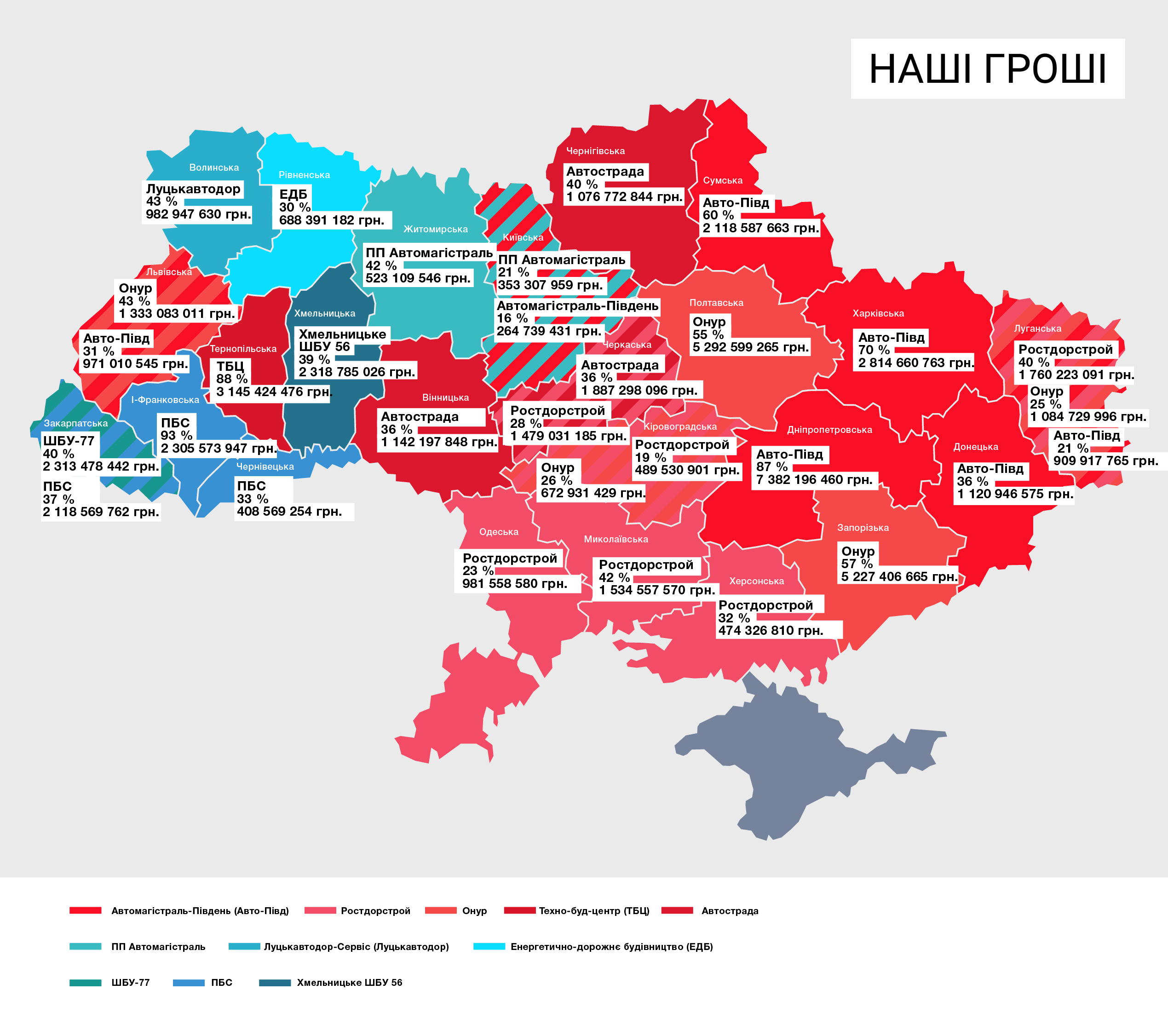 Также картелисты получили большее влияние, чем раньше, в Хмельницкой (Автострада) и Одесской (Ростдорстрой) областях.