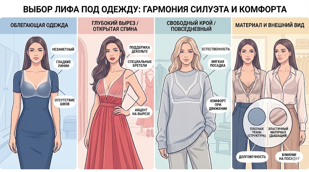 Разберёмся, как подобрать модель лифа под разные фасоны и типы одежды, не превращая выбор в бесконечный квест.