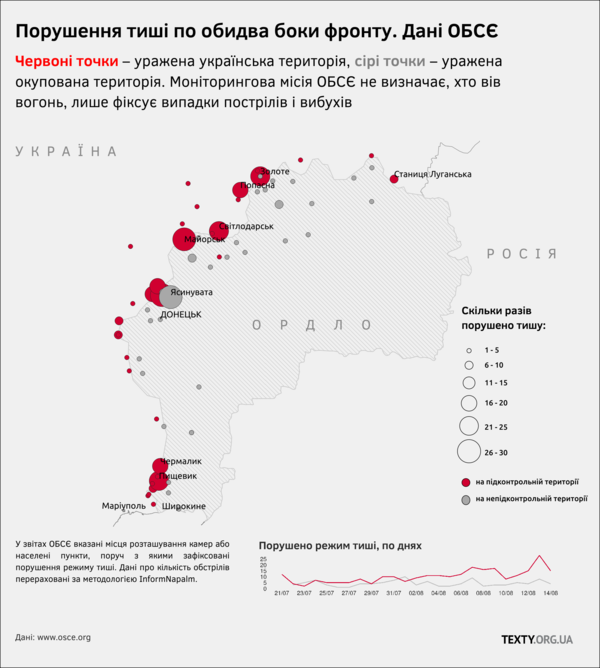 Принаймні, якщо ще кілька місяців тому ми бачили горді відео про те, як наші знищують позиції окупантів, то зараз таких відео майже немає, як немає й офіційних повідомлень про вогонь у відповідь. Із даних спостережної місії ОБСЄ можна зрозуміти, що окупанти стріляють по наших позиціях у 3.5 рази частіше, ніж ми, ймовірно, відповідаємо.