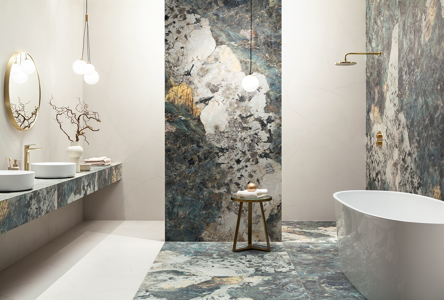 У ванній кімнаті плитка Sensory 3D найчастіше застосовується для створення акцентних стін. Вона ефектно виглядає в зоні умивальника, душової або за ванною. Об’ємна поверхня взаємодіє зі світлом, формуючи м’які тіні та додаючи простору глибини.